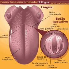 -Constituição: Músculo com nervos e vasos sanguíneos. É ela que transporta os alimentes para os vários dentes, e é muito importante para a deglutição (acto de engolir). Tem as pupilas gostativas que nos permite distinguir os sabores doce, salgado, amargo e ácido.